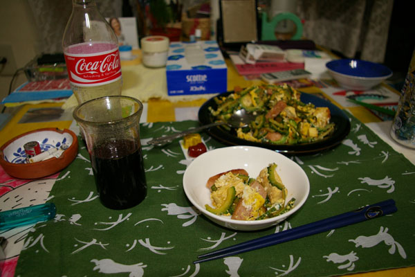 目的地のマンションはちょうどコンビニが一階にあるところでタクシーの運ちゃんもすぐに分かりました。ちょうどタクシーつくころにkaoちゃんが迎えに来てくれました。何年か前に入院したと聞いていましたが5月にあったとき同様元気そうで何より。コンビニにてコーラとビールを買ってkaoちゃん手作りのゴーヤチャンプルーを頂きました。