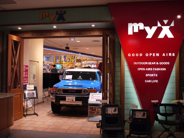 myxの正面玄関に鎮座するFJ。 アウトドア厳冬期の昨今だけど人気があるのかな?