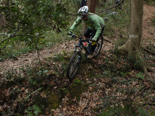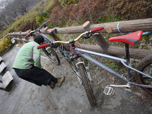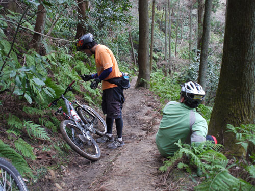 ニコのくだりで先生転倒。スリッピーな路面がディフォルトのコノ山ですが、冬場のドライ環境ですっかり忘れていたようです。そうだよ、この辺はちょっと雨が降るとチュルチュルになる。